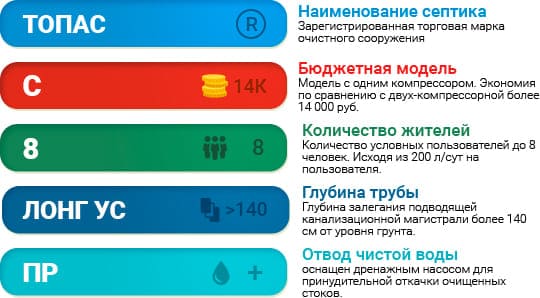 Установка выпущенная в 2016 году - эконом-класса так как является однокомпрессорной станцией. За счет сокращения компрессора автономная канализация Топас стоит дешевле.